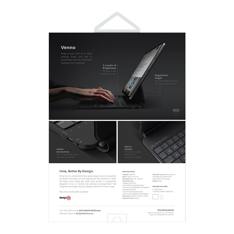 Uniq беспроводная клавиатура VENNO (англ.раскладка) Magnetic smart keyboard folio iPad Pro 11/Air 10.9 22/21